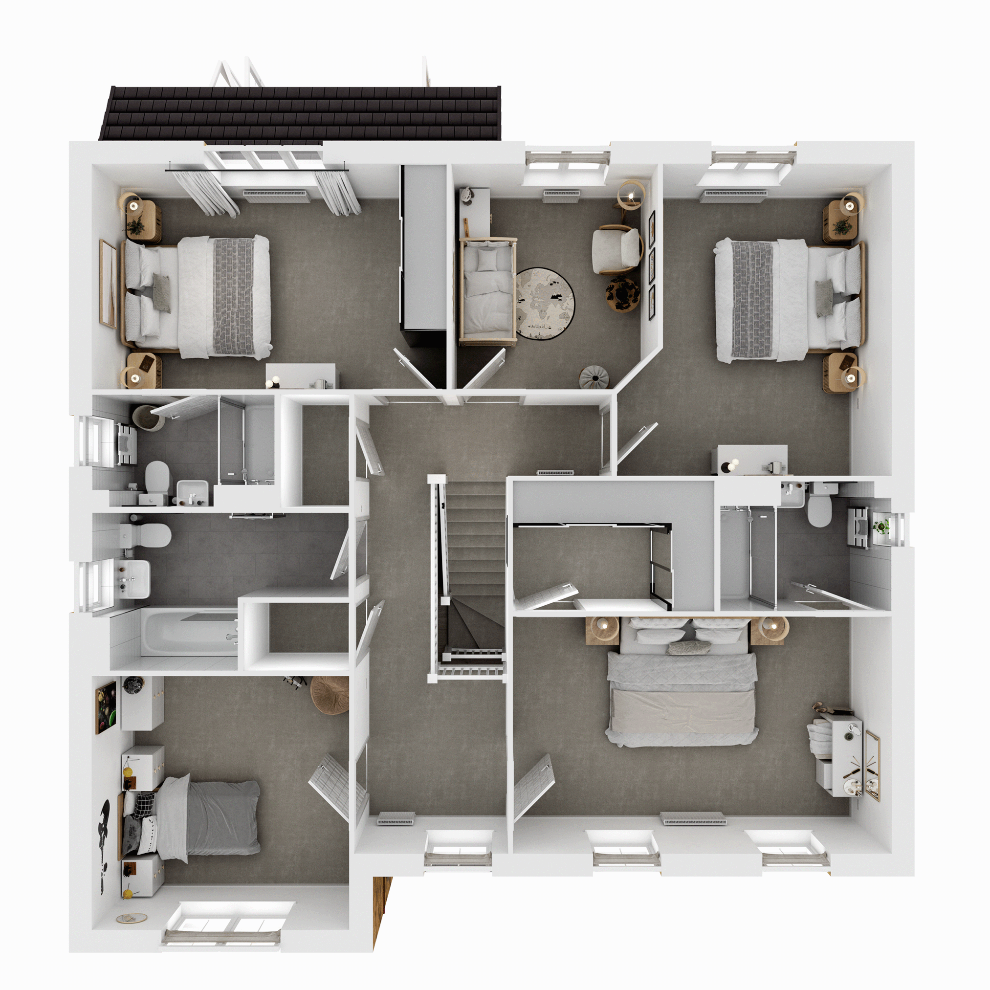 The virtual show home CGIs, videos and walkthroughs are indicative only and not an exact representation of what your new home will have included as features and finishes. Finishing Touches have been added throughout, with some of them highlighted with an ‘i’.