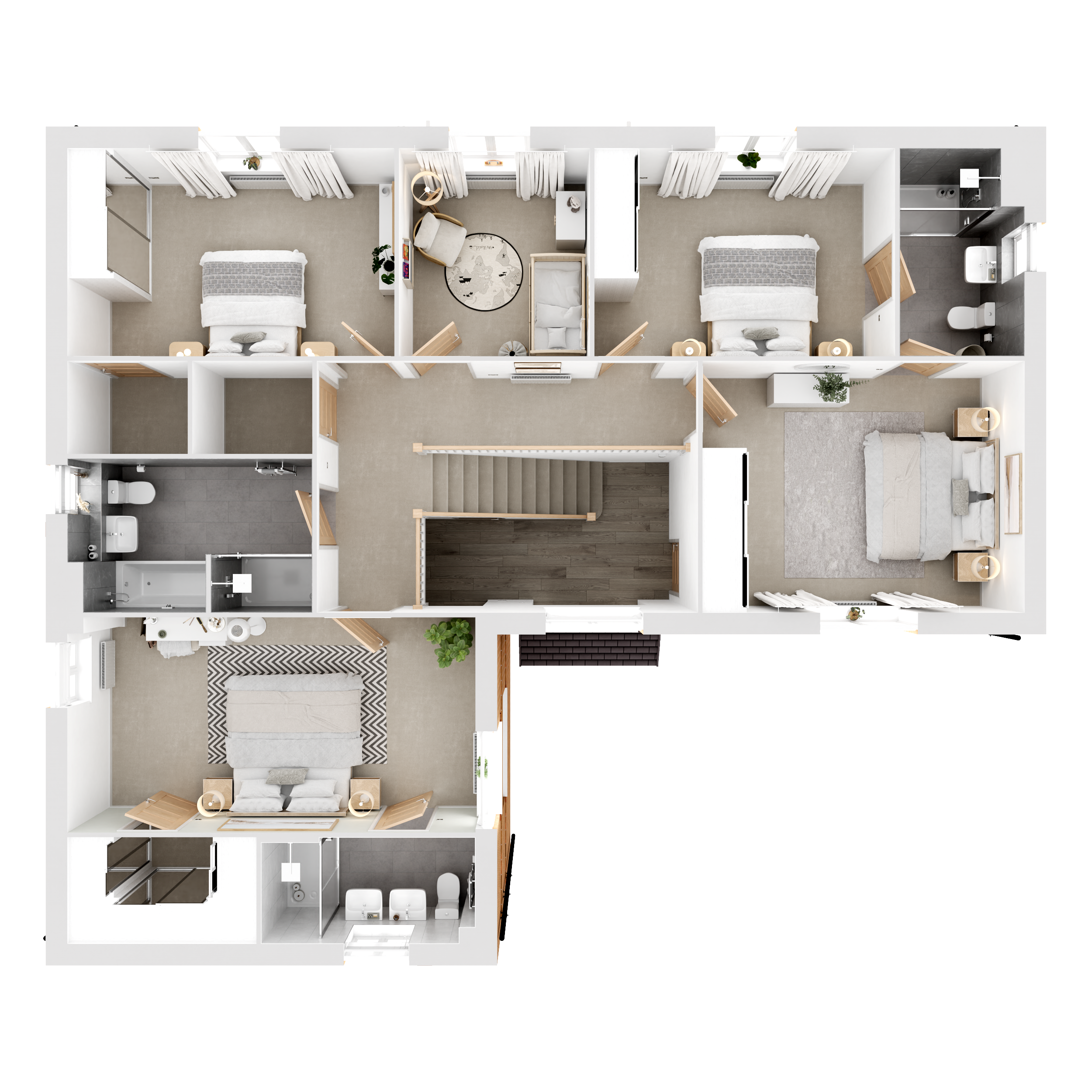 The virtual show home CGIs, videos and walkthroughs are indicative only and not an exact representation of what your new home will have included as features and finishes. Finishing Touches have been added throughout, with some of them highlighted with an ‘i’.