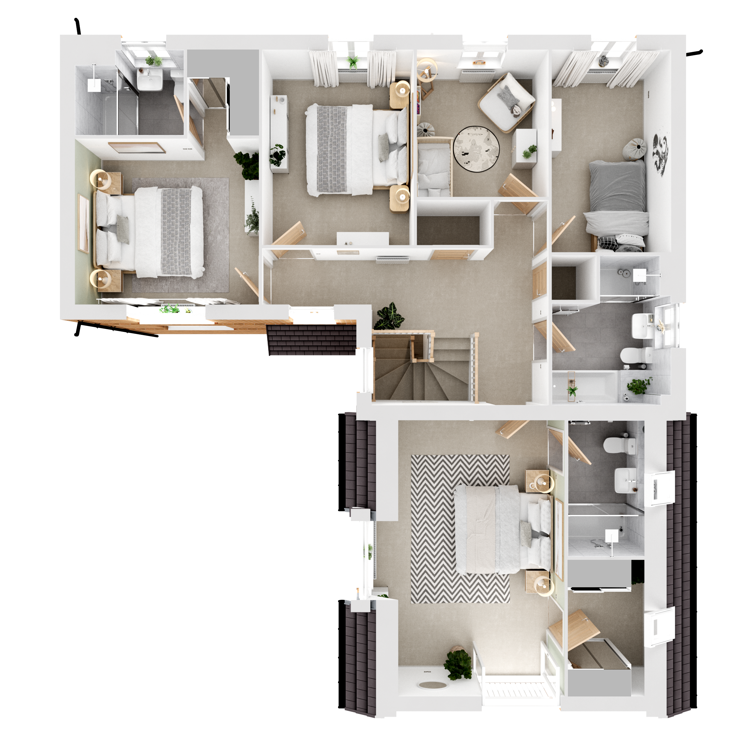 The Oxwich is a family-friendly home that’s ideal for visitors too – with an en suite guest room in addition to the luxurious dual-aspect en suite master bedroom. Three further bedrooms and a family bathroom are ideal for the children. A kitchen/family room is at the heart of the home and bi-fold doors create a wonderful inside/outside entertaining space. A utility, lounge, study and integral garage complete the ground floor.