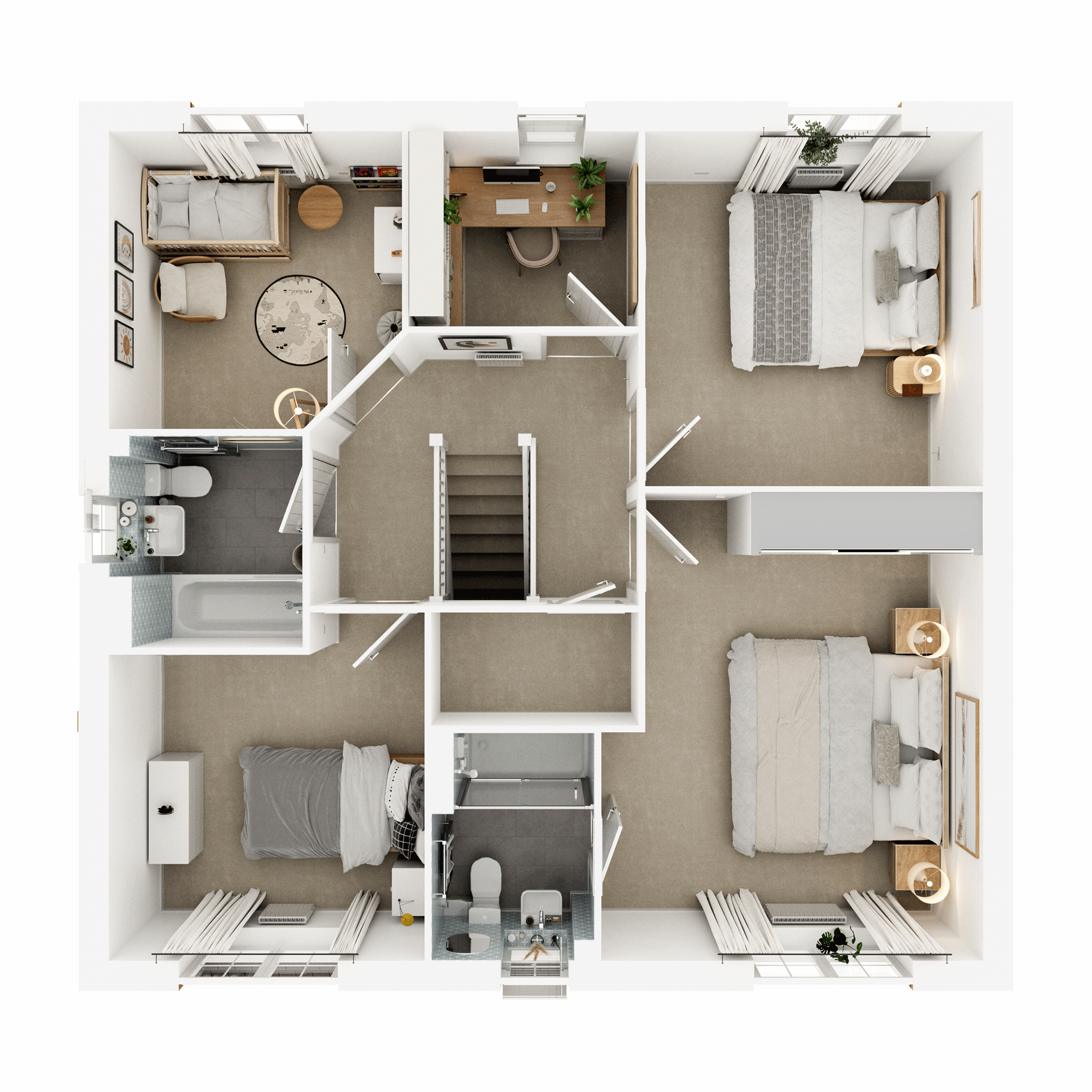 The virtual show home CGIs, videos and walkthroughs are indicative only and not an exact representation of what your new home will have included as features and finishes. Finishing Touches have been added throughout, with some of them highlighted with an ‘i’.