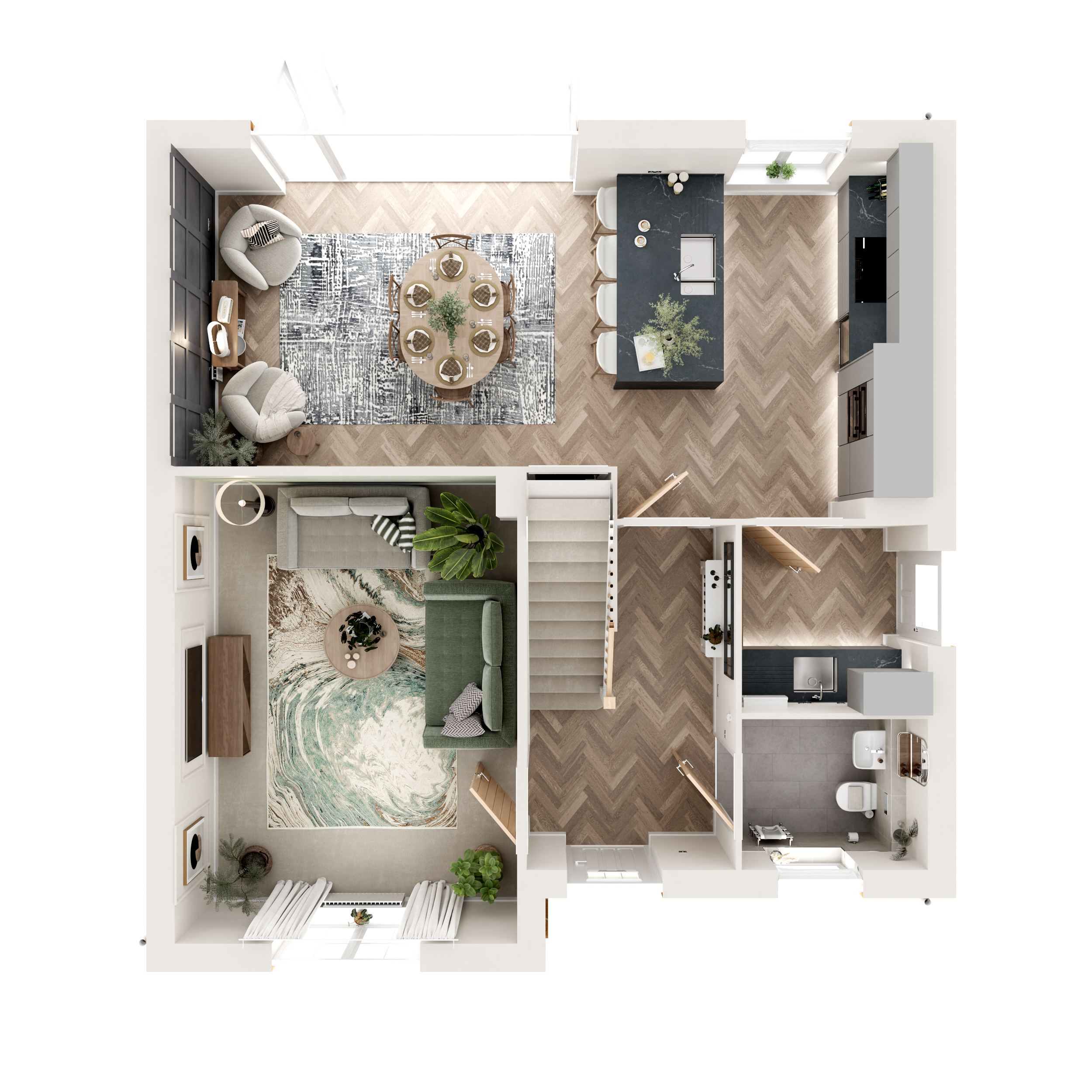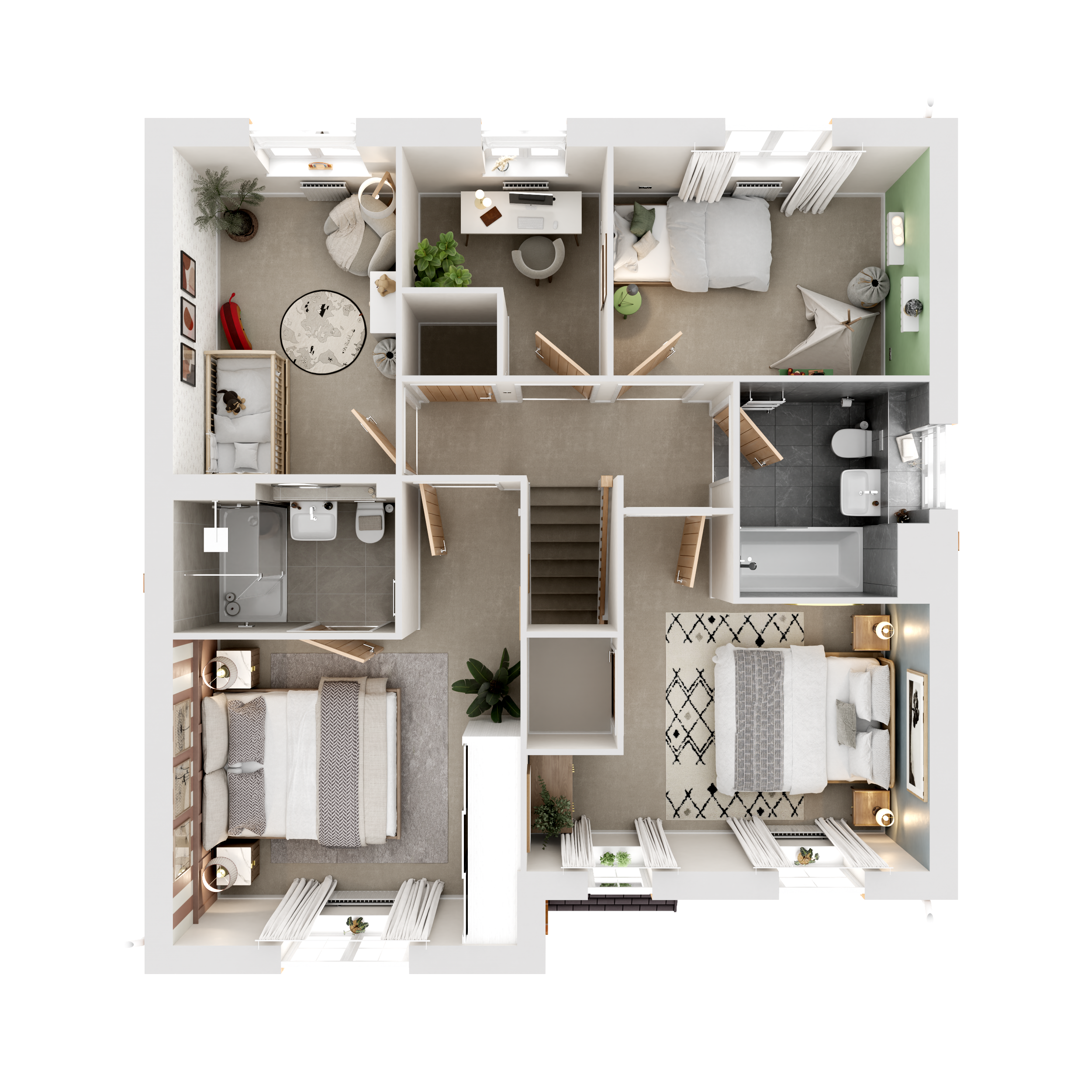 The virtual show home CGIs, videos and walkthroughs are indicative only and not an exact representation of what your new home will have included as features and finishes. Finishing Touches have been added throughout, with some of them highlighted with an ‘i’.