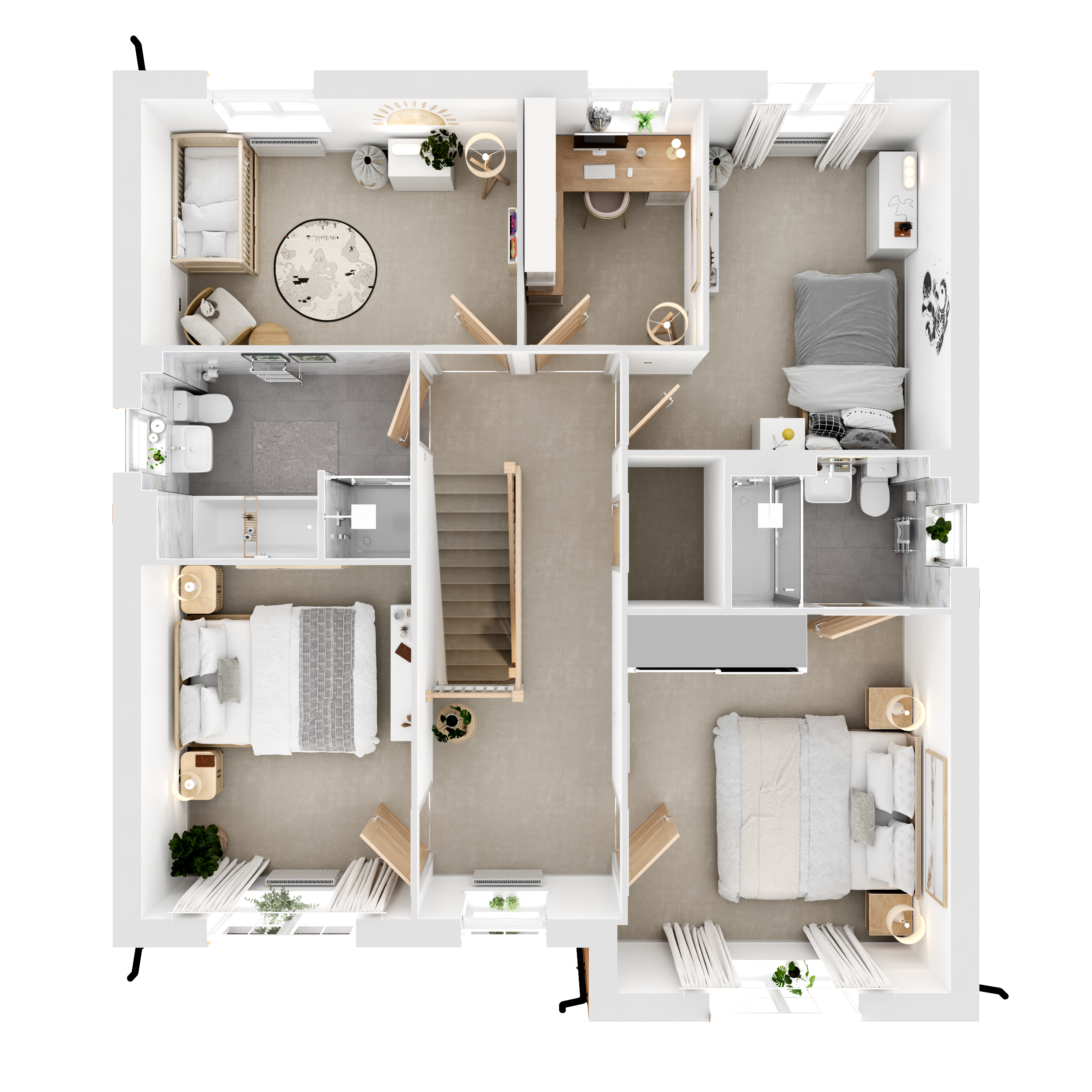 The Hendon is a home where possibilities unfold. Its thoughtful design brings together light, space and flexibility, creating a setting for life’s best moments. The open-plan kitchen and dining area flows to the garden through graceful bi-fold doors, providing plenty of natural light. A separate living room offers a calm retreat, while upstairs, four bedrooms and two bathrooms create the perfect sanctuary. With a dedicated home office and practical touches like internal garage access, The Hendon is a home that adapts as your story grows.