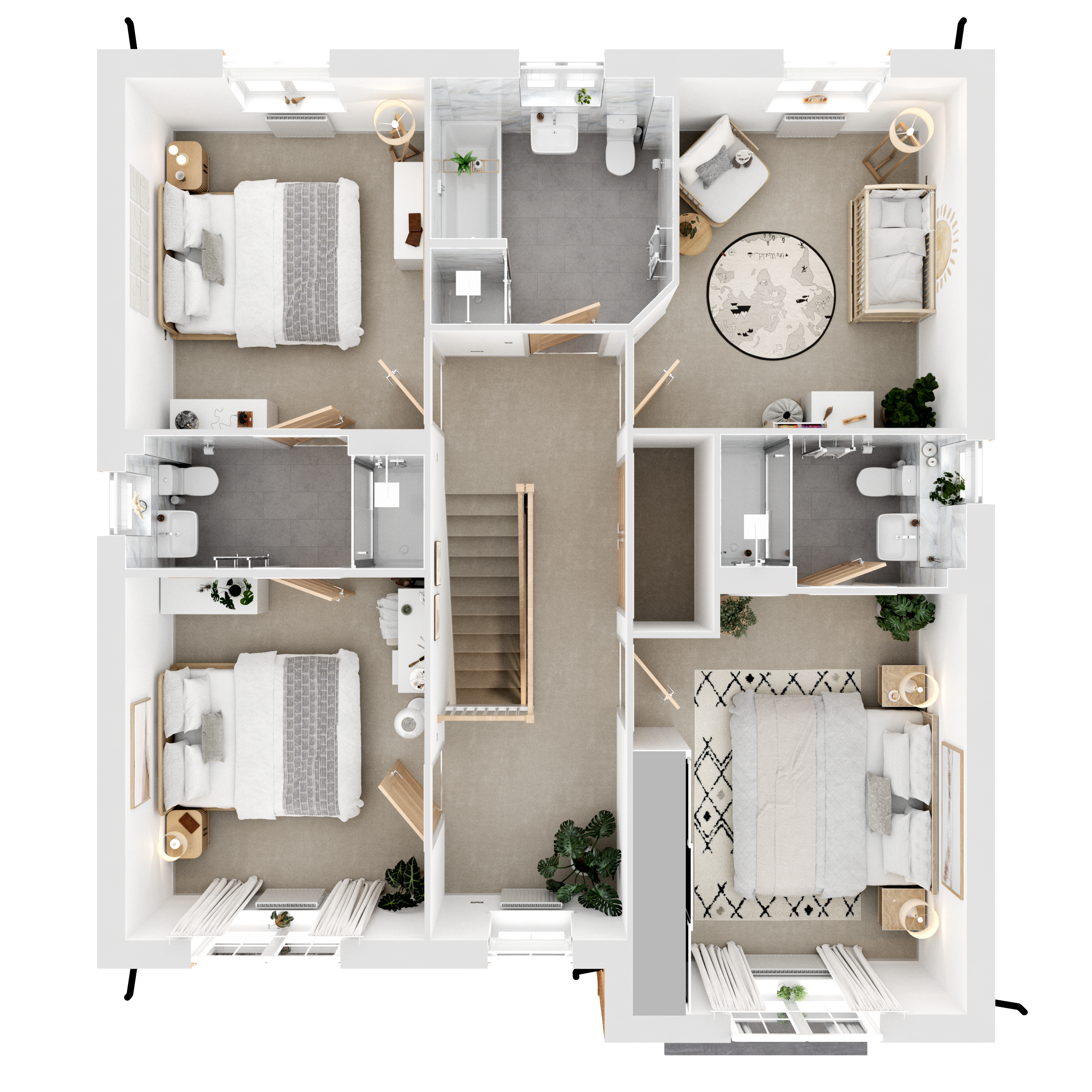 The virtual show home CGIs, videos and walkthroughs are indicative only and not an exact representation of what your new home will have included as features and finishes. Finishing Touches have been added throughout, with some of them highlighted with an ‘i’.