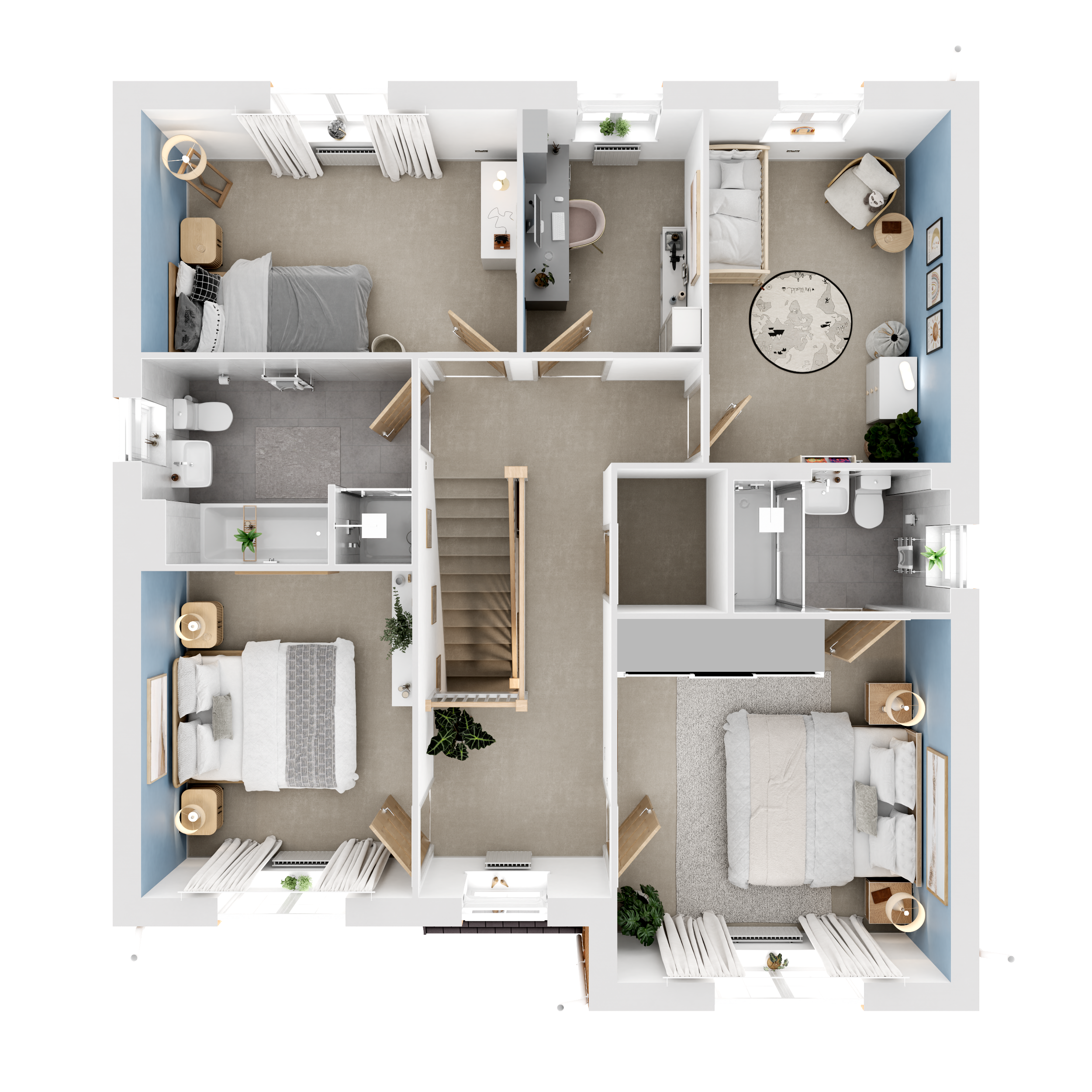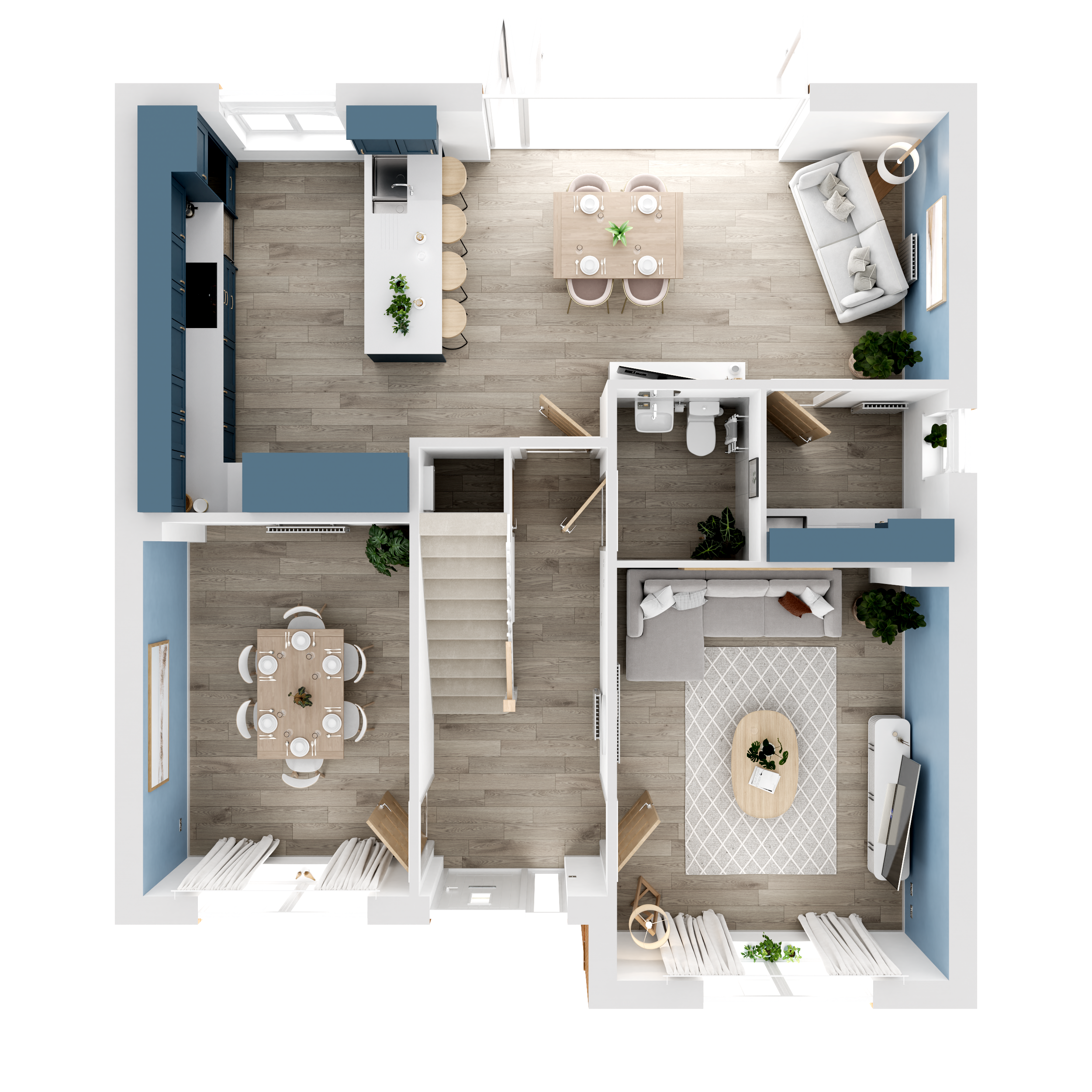 The virtual show home CGIs, videos and walkthroughs are indicative only and not an exact representation of what your new home will have included as features and finishes. Finishing Touches have been added throughout, with some of them highlighted with an ‘i’.