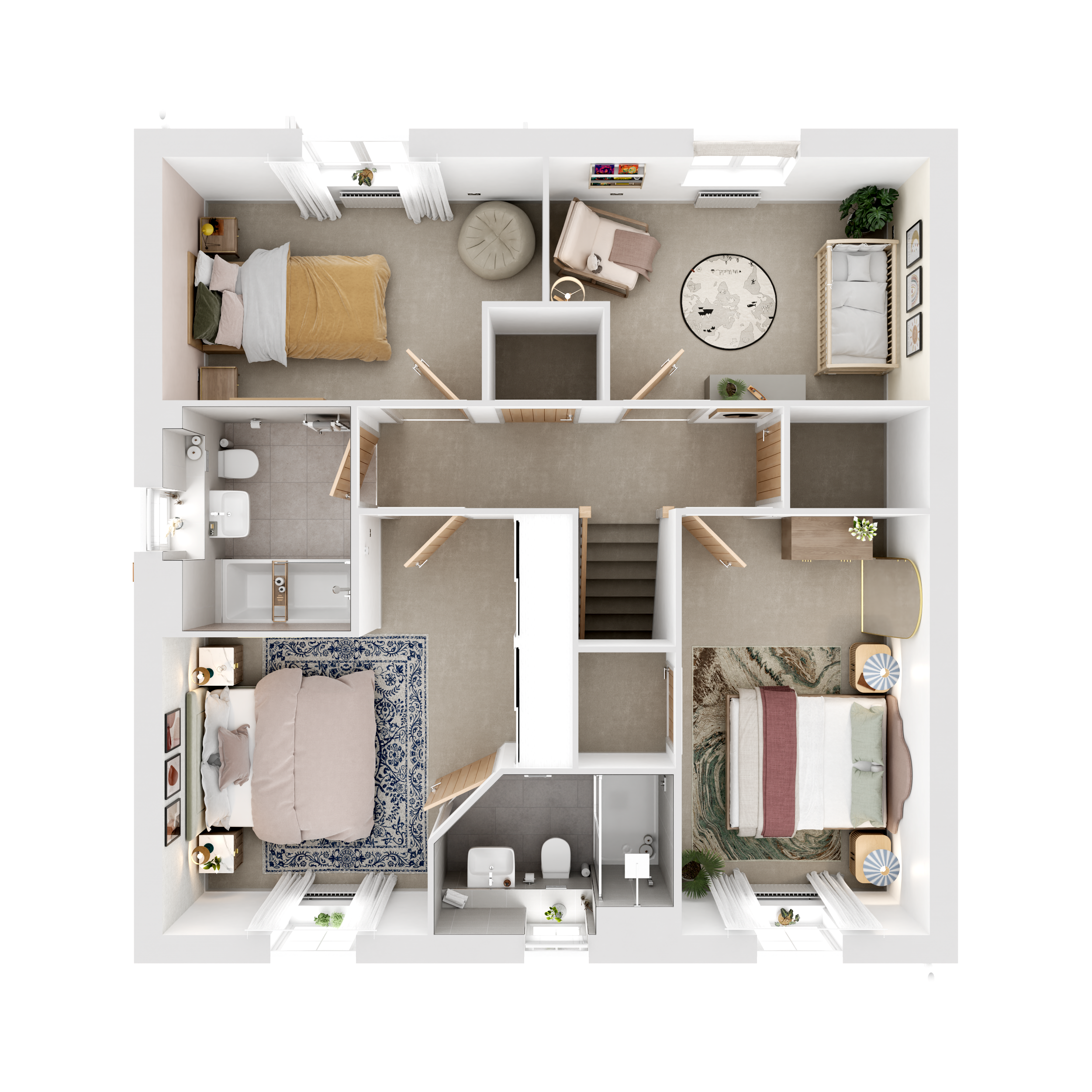 The virtual show home CGIs, videos and walkthroughs are indicative only and not an exact representation of what your new home will have included as features and finishes. Finishing Touches have been added throughout, with some of them highlighted with an ‘i’.