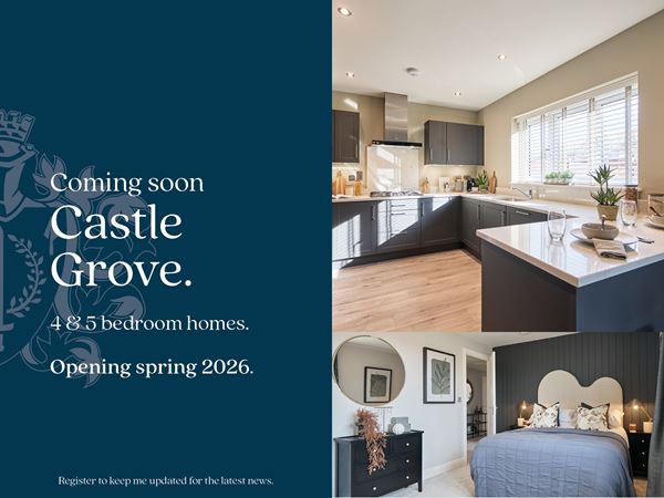Castle Grove features our new range of exclusive four and five-bedroom detached homes and is nestled in a semi-rural position that includes open space onto woodlands and tranquil walking paths.