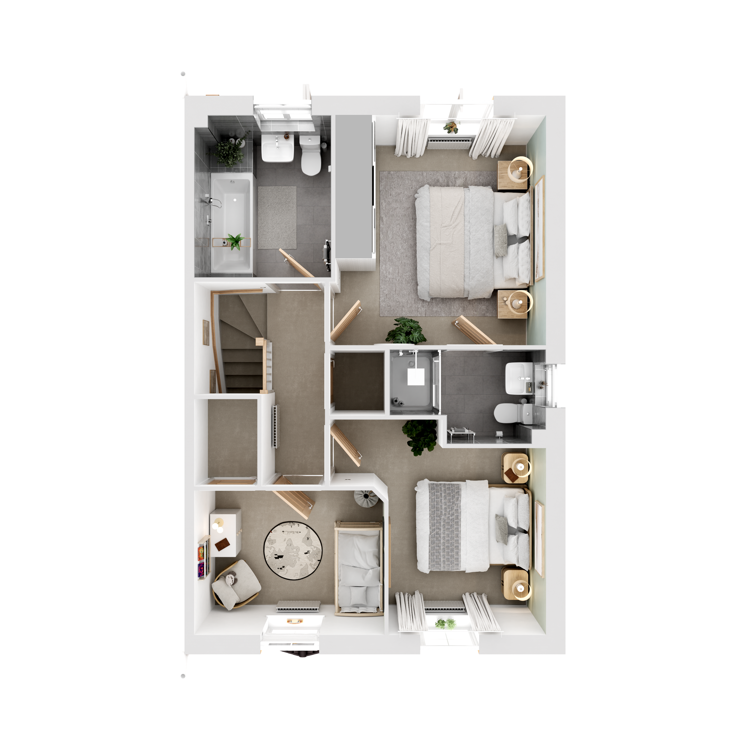 The virtual show home CGIs, videos and walkthroughs are indicative only and not an exact representation of what your new home will have included as features and finishes. Finishing Touches have been added throughout, with some of them highlighted with an ‘i’.